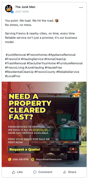 We handle your social media so you don't have to. Our team creates and shares posts that keep your customers interested and help your business grow on platforms like Facebook and Instagram.